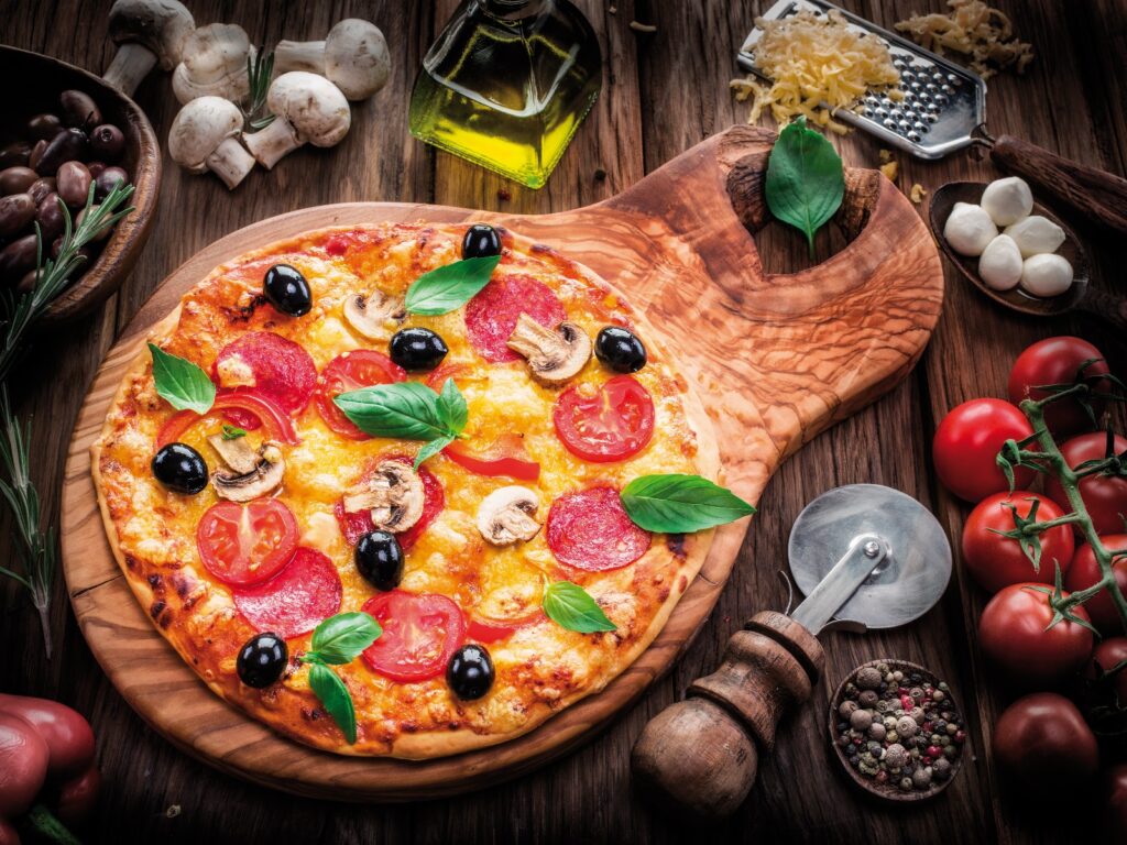 mit Truthahnsalami¹²³, Pilzen, Paprika, Oliven, Tomatensoße & Käseᴳ